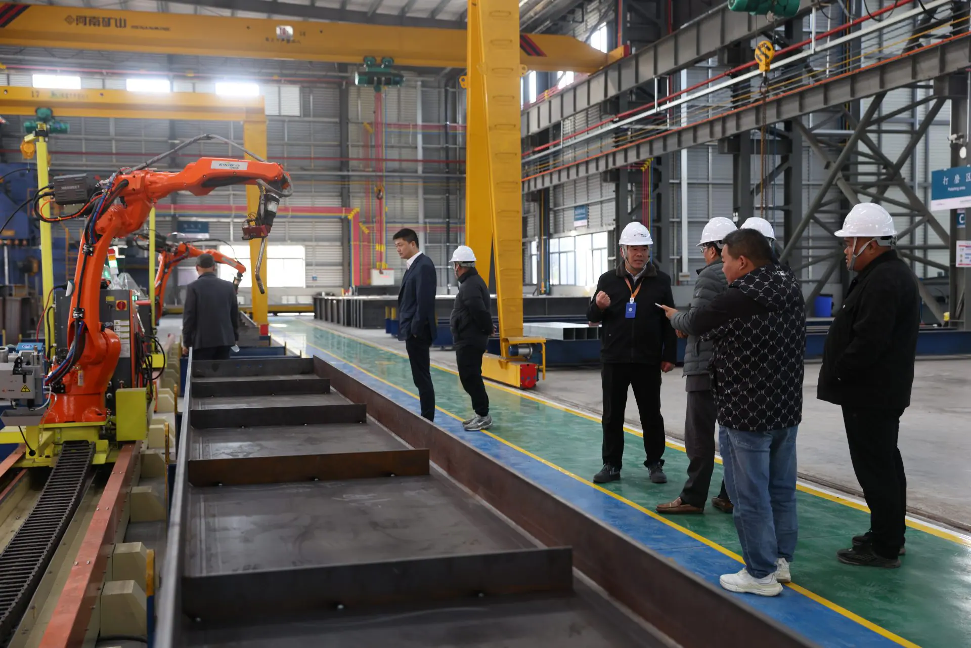 据总经理邵小强先生介绍,容博一期项目占地36亩,建筑面积14000平方米,配备100吨级起重能力的现代化车间。通过BIPV光伏板与市电双路供电系统、数控激光焊接机器人、全车间网络覆盖等智能化设施,实现“生产数据传输网络化,数字化赋能智能制造”,确保产品符合国际品质标准。